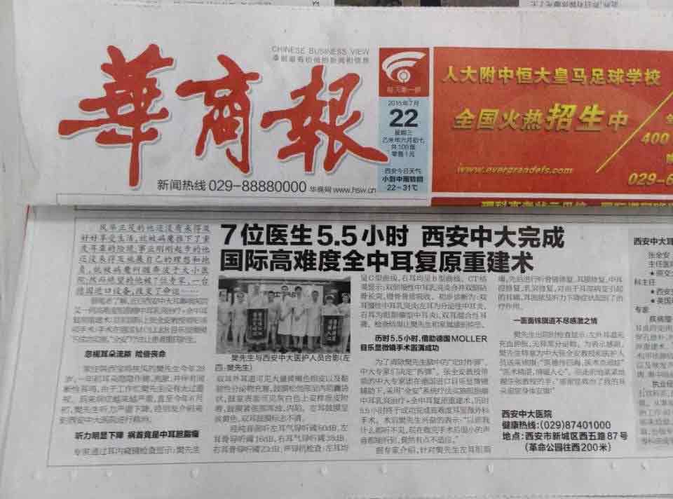 (摘自:华商报2015年7月22日 文:韩艳)风华正茂的他还没有来得及好好享受生活,就被病魔推下了重度耳聋的险境;事业刚刚起步的他还没来得及施展自己的理想和抱负,就被病魔纠缠奔波于大小医院;然而绝望的他被7位医生、一台进口设备,改变了命运……