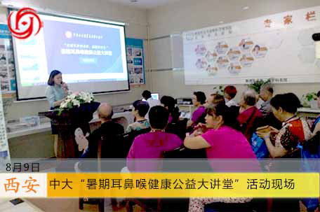 为提高市民耳鼻喉健康预防保健知识,加强患者治疗信心,8月9日上午,由中国五官健康基金会主办,西安中大耳鼻喉医院承办的“直通中大耳鼻喉名医,赢精彩好礼——暨暑期耳鼻喉健康公益大讲堂”活动在西安中大耳鼻喉医院一楼大厅开展,活动邀请了西安中大耳鼻喉医院首席医生主讲。