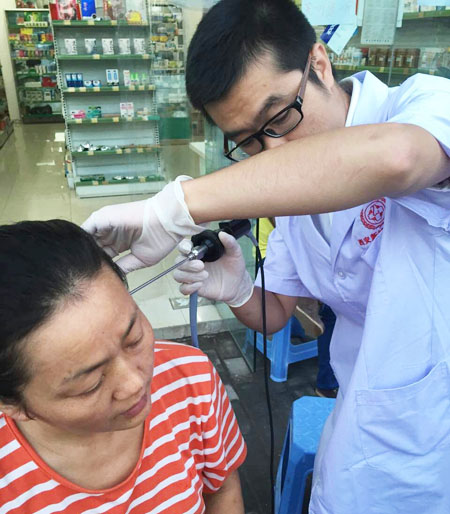 幸福小区居民接受耳内窥镜健康检查