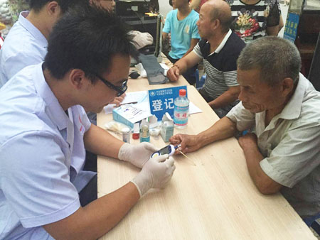 幸福小区张大爷接受血常规检查